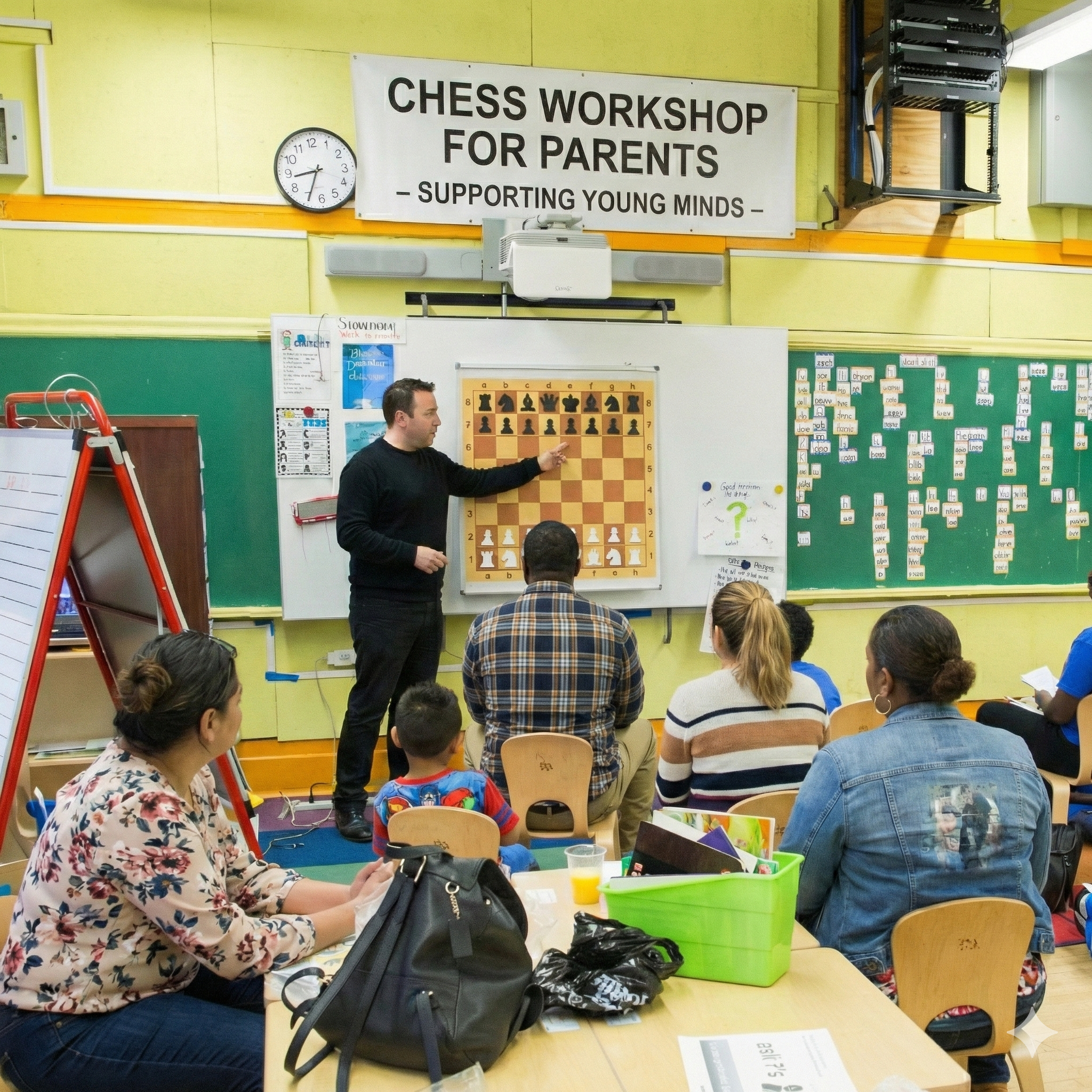 A 2-hour live workshop where parents learn chess fundamentals and the art of teaching it to their children.